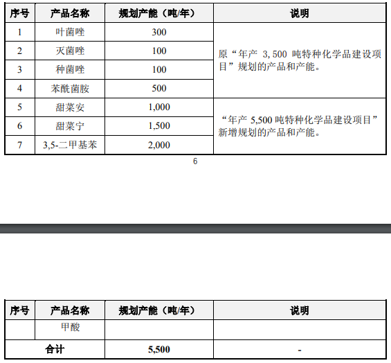 5)年产1000吨甲氧虫酰肼、700吨中间体及配套设施建设项目:甲氧虫酰肼1000吨、中间体MMBC(3-甲氧基-2-甲基苯甲酰氯)700吨。