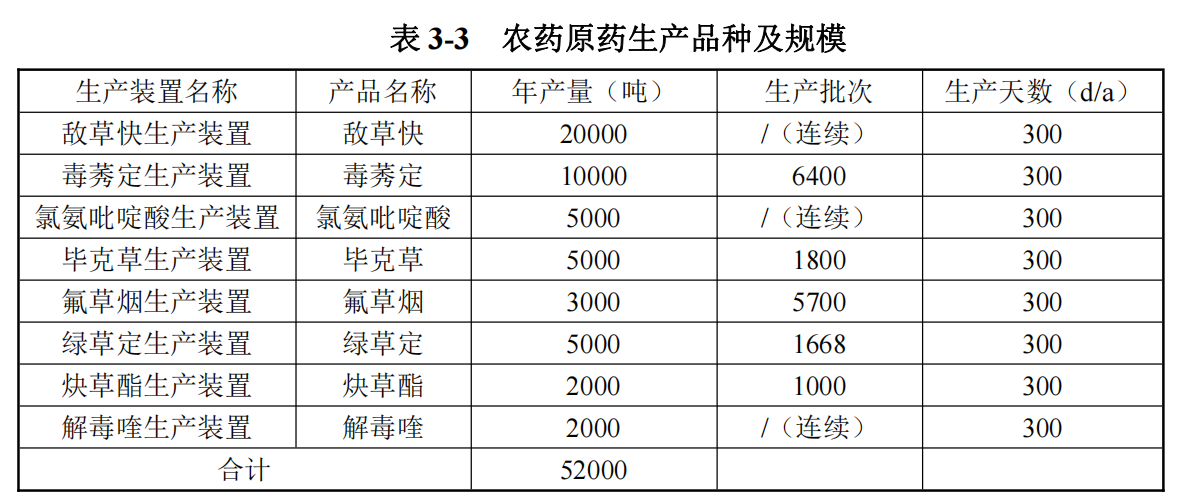 3)年产52000吨农药原药项目: