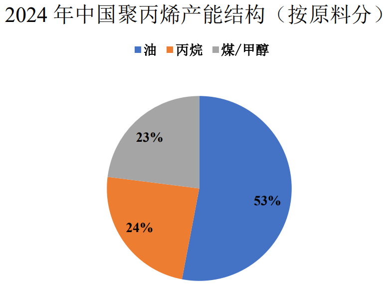 聚丙烯中,油制产能占比 53%,丙烷制占比 24%,煤或甲 醇制占比 23%。