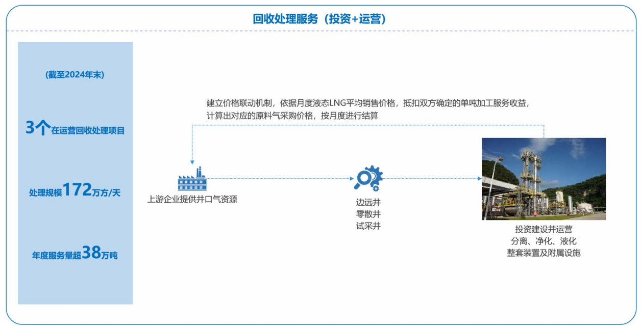 主要包括自产 LNG 和外购气。自产 LNG 方面,公司通过布局天然气回收处理配套服务项目及传统 LNG 液化工厂,合计自主控制的 LNG 产能规模达 70 万吨。外购气方面,公司根据需求缺口及价差, 灵活采购部分 LNG、PNG、CNG 作为补充。