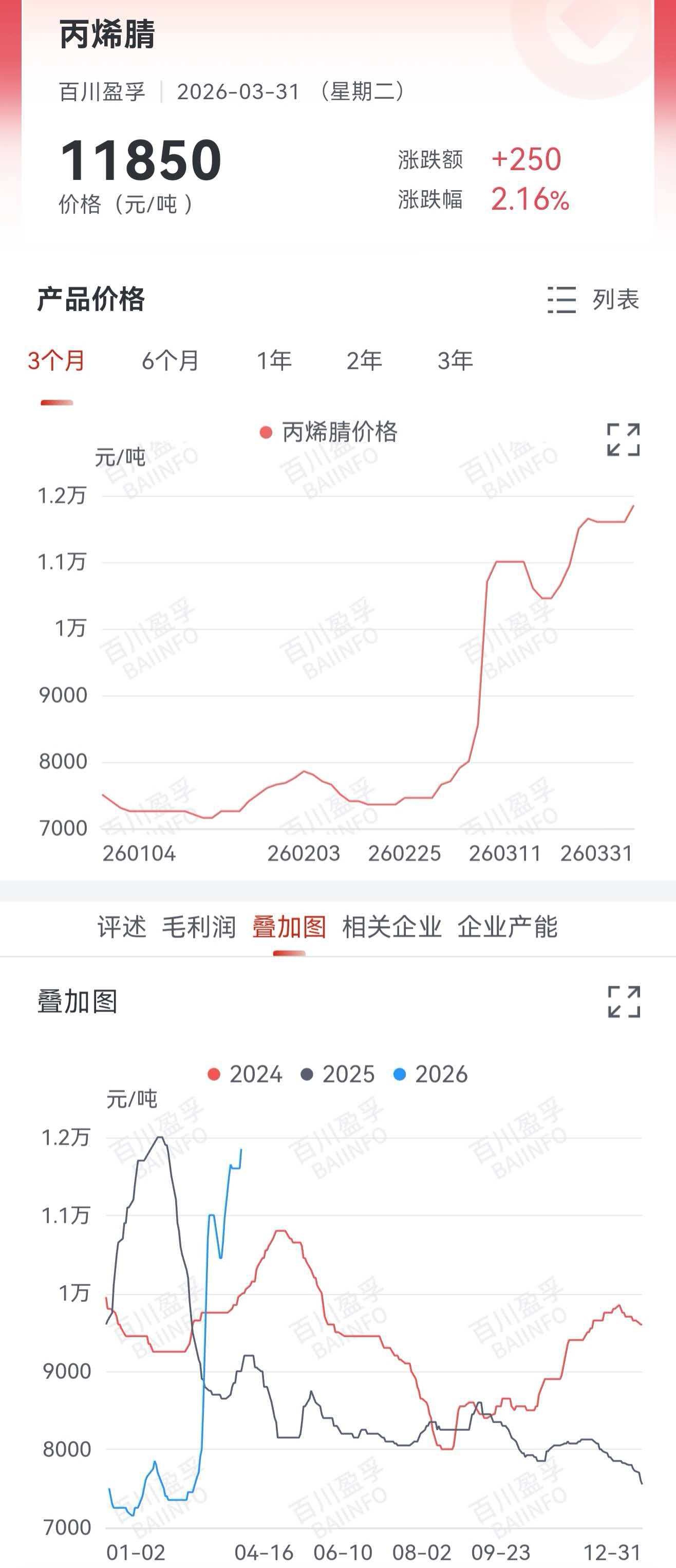 (1)原材料丙烯腈价格一季度价格大幅增长。