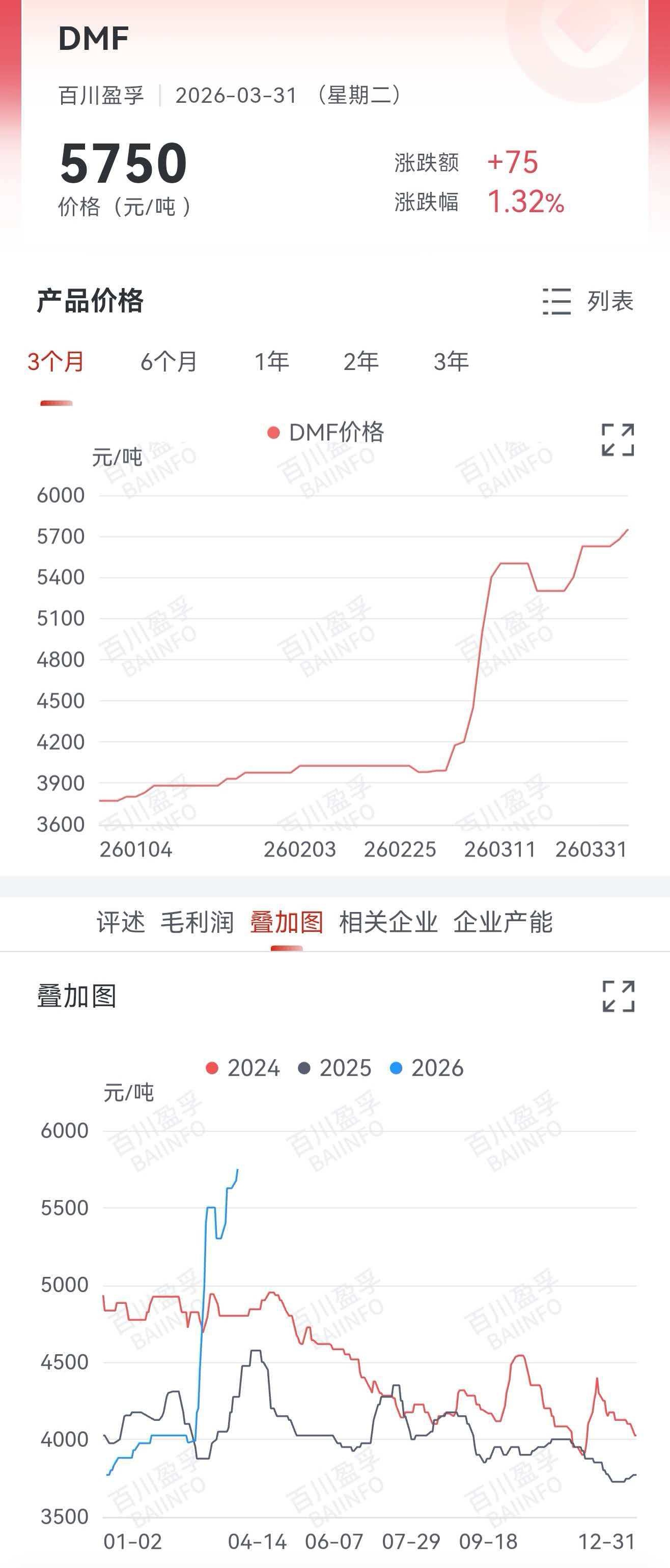 (2)原材料二甲基甲酰胺(DMF)价格一季度价格大幅增长。
