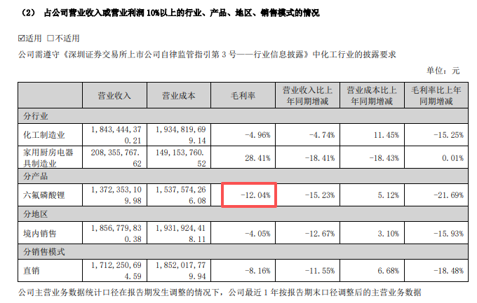 1)锂电池材料营收2.39亿元,占比27%,毛利率-8.10%;