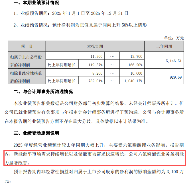 锂电材料业务,后续重点关注六氟磷酸锂价格的变化。