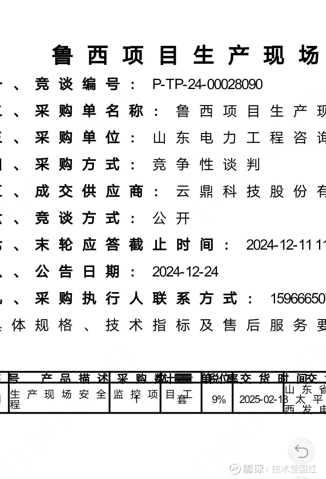 2. 2024-12-24 山东电力工程咨询院 鲁西项目生产现场安全监控:未公开(竞争性谈判,行业同类项目约300-800万元)