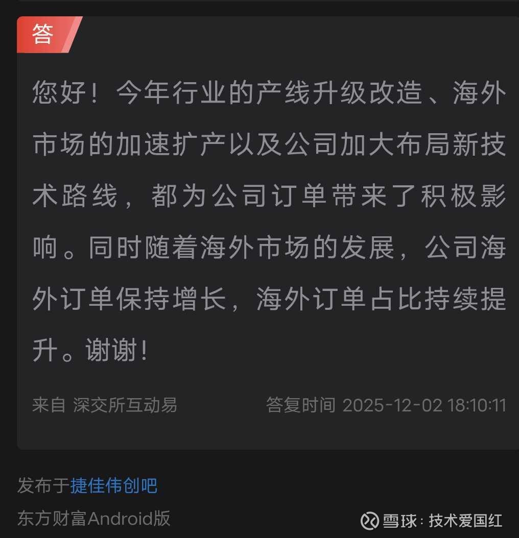 本人注解:这个回答更直接了,就差喊出马斯克名字了。请问是国外那个客户需求这么大,害的公司还要去海外扩产?国内内卷这几年亏惨了,要是没有明确订单,你敢去扩产?你要敢去,我名字倒过来写