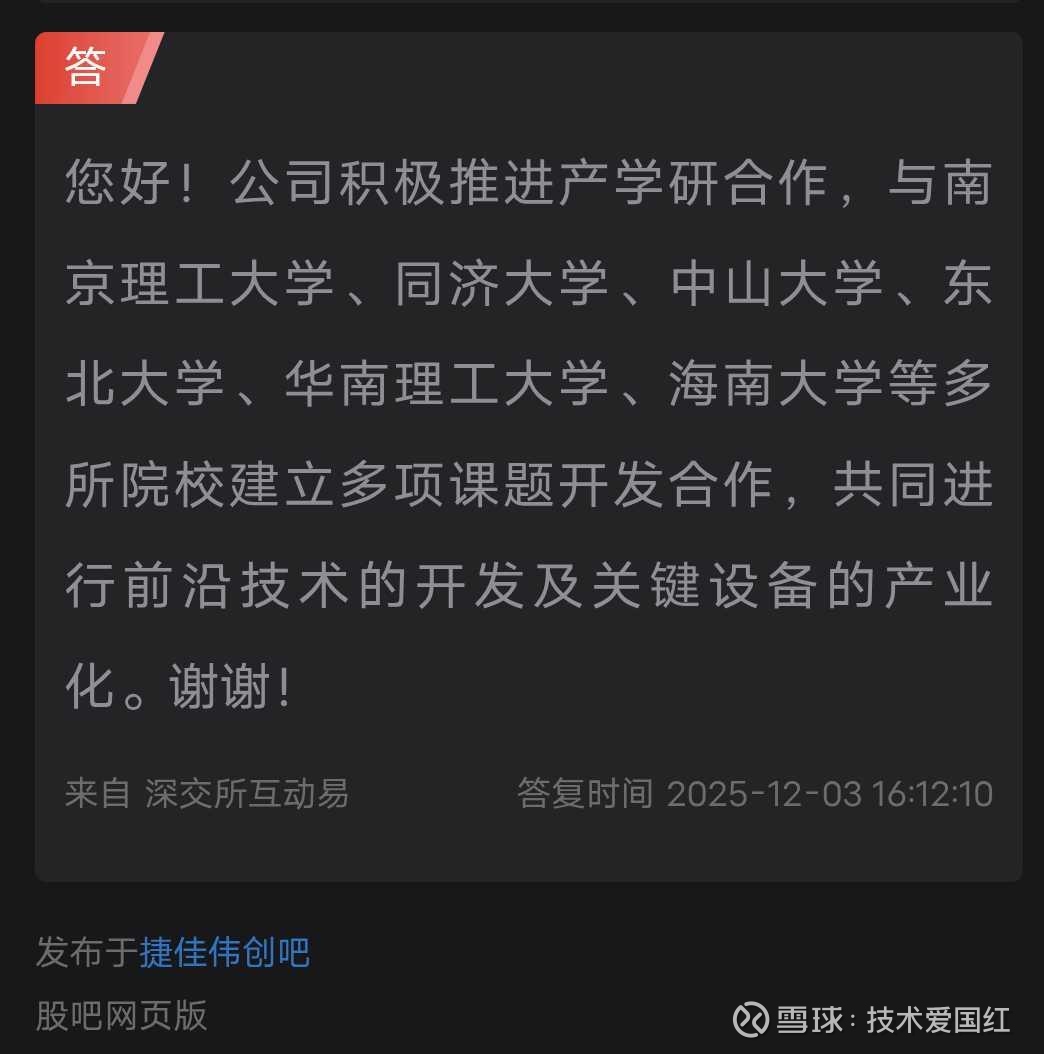 本人注解:公司合作这么多头部企业,为什么不直接公开呢?就是怕竞争对手嫉妒啊。大家自己看国外新能源头部企业,请问国外新能源企业除了马斯克还有谁算得上头部企业?为什么董秘回复没有和特斯拉合作?因为他们和马斯克火箭公司合作,当然不是特斯拉啊。而且,当时提问的好几个问题都问有没有和SpaceX合作,董秘直接不回答,为什么不回答,因为不能撒谎啊,必然有合作,又要保密,那就不回答。于是找个和特斯拉没有合作的借口来回避商业秘密。而且,据我所知,就算他们和特斯拉有合作,也是和特斯拉供应链其他子公司合作,名义上还是不属于和特斯拉合作。