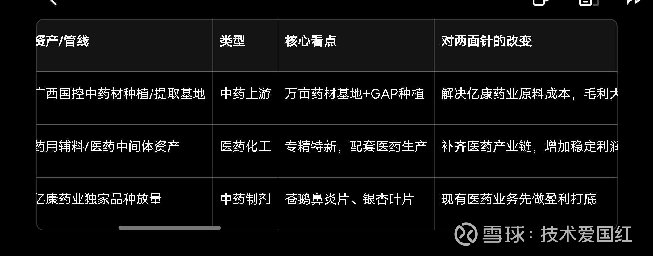 三者结合,形成 “原料种植→中药日化→普药制剂→创新药研发” 的大健康全产业链,协同效应远超单一资产,彻底解决两面针“有医药资质、无高价值产品”的痛点。