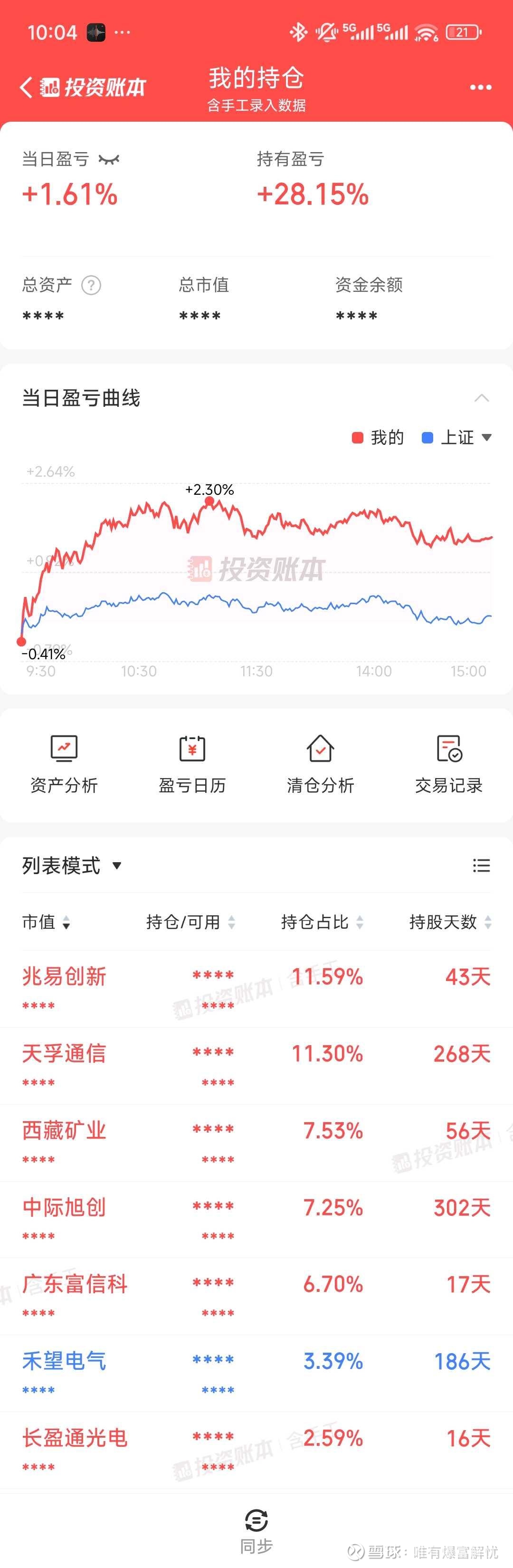 全天涨幅1.61%,昨天亏得还没回来。今天还是有些小操作的: