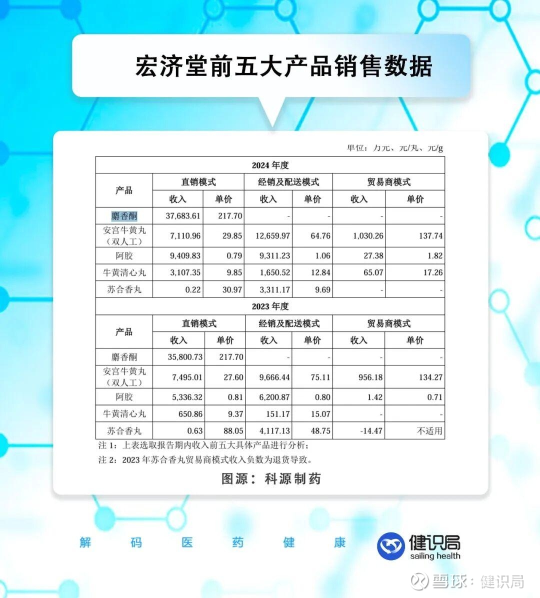宏济堂主要营收是靠麝香酮,是人工麝香上游原料麝香酮的唯一供应商,持有人工麝香唯一生产商北京联馨的24%股权。有资料表明,2024年,麝香酮在宏济堂直销模式下卖了3.76亿元,这部分收入一直十分稳定。