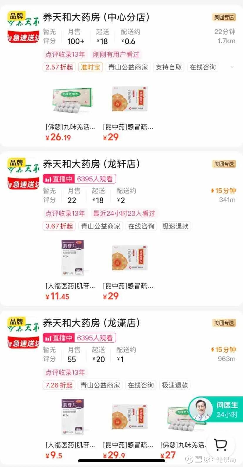 健识局发现,养天和的这场“宣战”似乎并不是所有加盟商都跟上了。目前在线上平台,多家养天和大药房仍然可以正常提供药品配送服务。