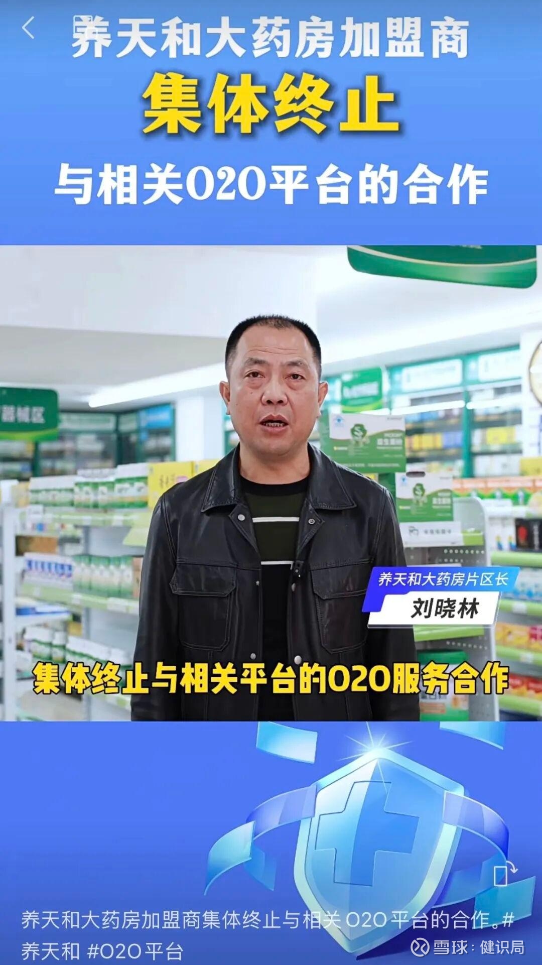 12月23日,国内知名药店连锁养天和大药房通过官方视频号发声:“为维护行业健康生态,保障企业合法权益,抵制内卷的侵蚀,并坚守作为健康卫士的初心与使命,决定集中终止与相关平台的O2O服务合作,拒绝其不合理入驻要求。”