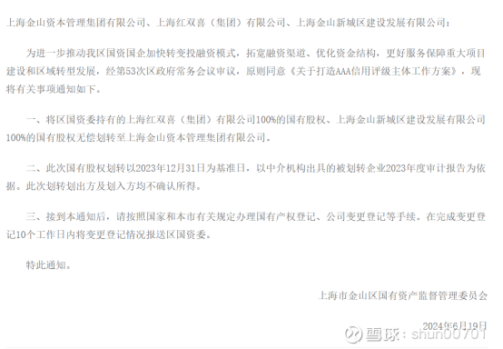 上海玩具进出口有限公司首先PASS掉,平级的收入利润比凤凰大的多不太可能,不过可以看到金山国资下有个投资运营平台,也是上海凤凰的股东之一上海金山资本管理集团有限公司。 资本运作看时间过程。上海凤凰2023年2月人事出现变更,法定代表人及董事长变更为胡伟,企查查上可以看到胡伟的简历,胡伟在任职上海凤凰董事长前是上海金山资本管理集团有限公司董事长,从人事调动上可以看出2023年就有重组的迹象。 时间继续轮转,2024年6月,金山国资将其名下的上海红双喜(集团)有限公司100%国有股权转至上海金山资本管理集团有限公司,红双喜(集团)有开启资产运作的迹象。
