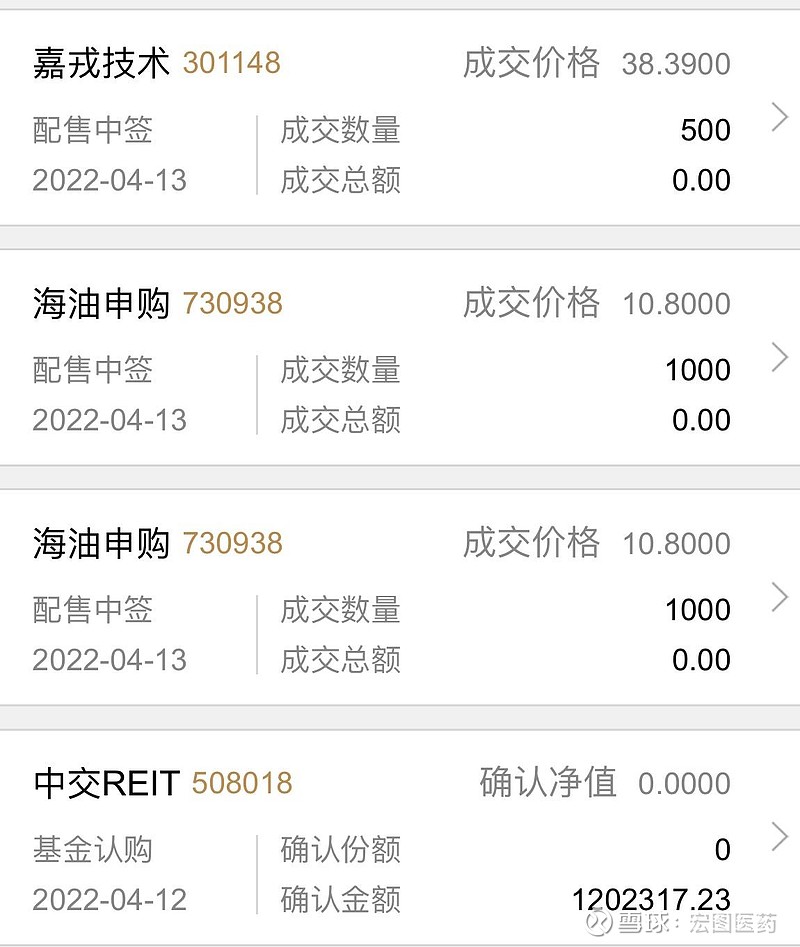 同年同月还中了华夏中交REITS,当时很热门,申配售比例0.84%,开盘后一看就涨一点点,才研究这个东西到底是什么玩艺儿,不看不知道,一看一键清仓,赚了几个钱还不如存活期,不亏就是赢