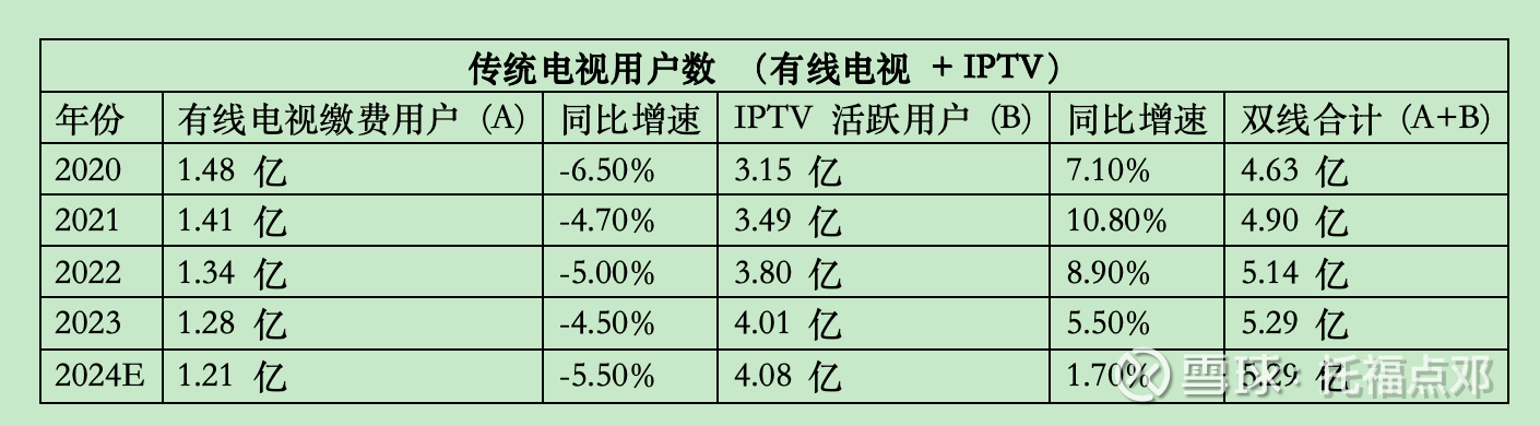 若将IPTV与有线电视统一界定为传统电视,市场对新媒股份的主要忧虑在于,大众对传统电视的喜爱程度正逐步降低,这在一定程度上确实属实,且未来这一态势会愈发明显。然而,当下传统电视依旧拥有极为庞大的基础用户群体。