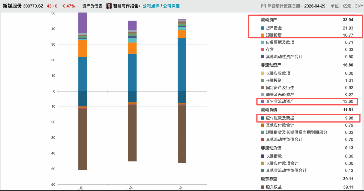 资产:51亿,其中货币资金与银行存款共计35亿,占比达70%,另有10.7亿的合同资产。