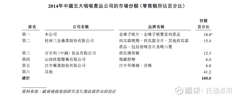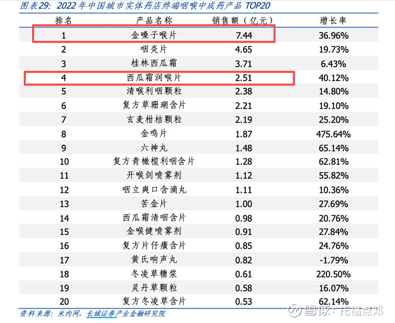 桂林三金也引用过米内网排名,如果看整体中成药咽喉产品,西瓜霜系列排名第一,如果看单品,金嗓子喉片是第一大单品。