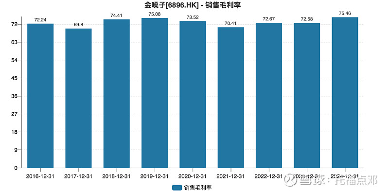 毛利率长期保持稳定,其中核心产品金嗓子喉片的毛利润率始终保持在76.6%
