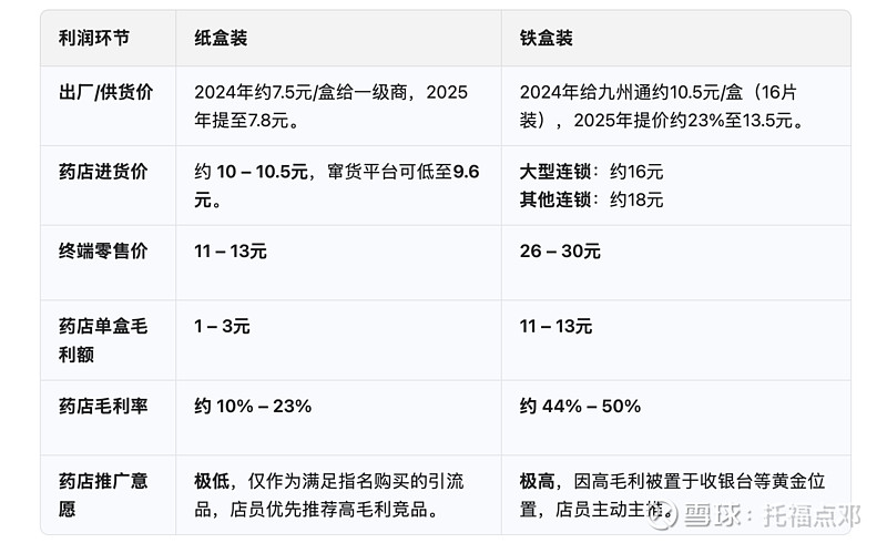 面对这样的局面,金嗓子不愿意冒着丢失基本盘客户的风险大幅提价,但是又想通过创新来解决终端利润率过低的问题,因此就引入了九州通作为独家总代来经营金嗓子喉片-铁盒版这块业务。