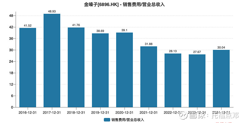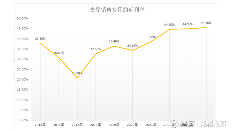 销售费用率较10年前显著降低,近两年维持在30%左右。