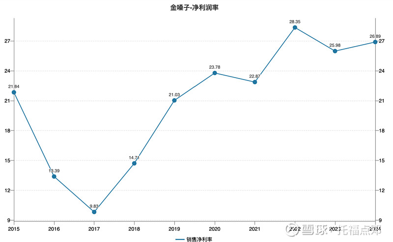 净利润率随着销售费用率的降低,近年来稳定在25%以上。