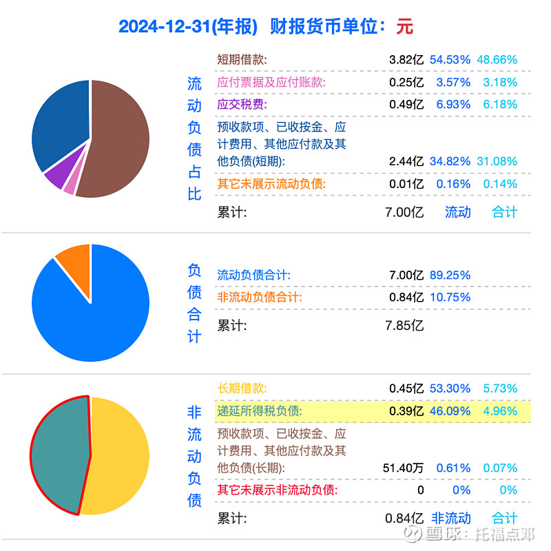 几乎没有长期负债,短期负债7亿,其中3.8亿短期借款,2.4亿预收款。