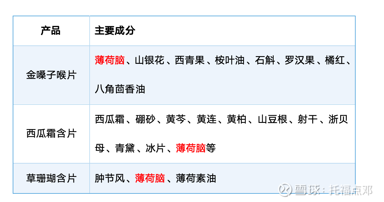 考虑到提供这种清凉感主要就是薄荷类的成分,也许金嗓子的配方就是用料最猛的一个。