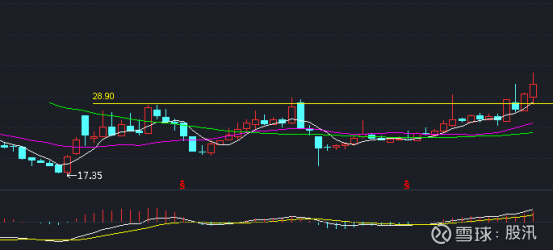 我们来追踪盘古智能这只股票。电气设备,工业母机概念。周线突破28.90,MACD红柱依次放大。