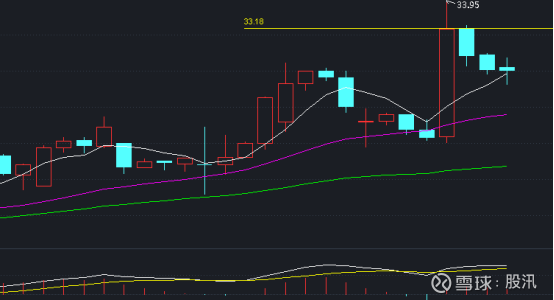 60分钟线图(上图):我们不预测明天的走势,但是我们需要紧盯股价,只要股价向上突破33.18,就要进场了!我们等一个绝佳位置,就是看60分钟K线股价图能不能跌破20线,再次金叉20线?也就是等待60分钟K线图的天眼地量形态!