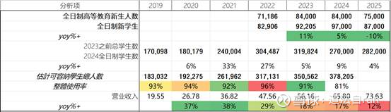 根据公司2025年年报来看,2024年2025年两年收入分别增长17%和12%,高于学生人数增幅,所以当初的判断没啥问题。但是,今年值得注意的是全日制新学生增幅已开始放缓,叠加之后资本开支的减慢,个人预计除非并购重启,否则营收增长未来三年将围绕12%小幅波动。