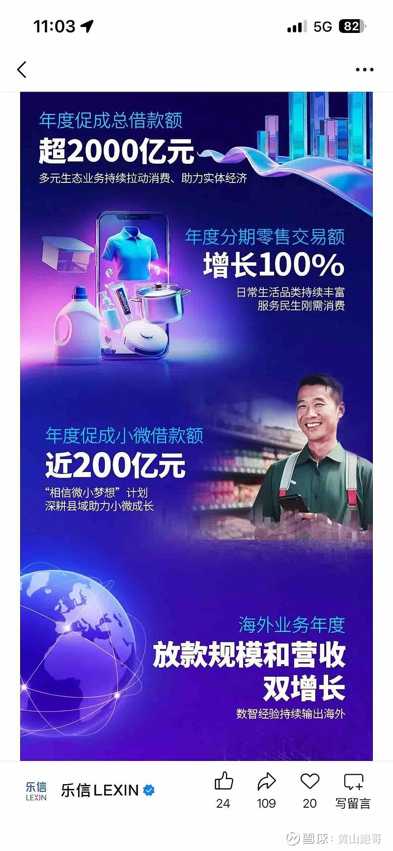 $乐信(LX)$ 乐信当前处于极度低估的水平,股息率11%,而且公司昨天的公众号明确提示2025总贷款2000亿以上,前三季度1560亿,说明四季度至少440亿,助贷新规影响不大,我现在8.8万股,而且还会继续加的