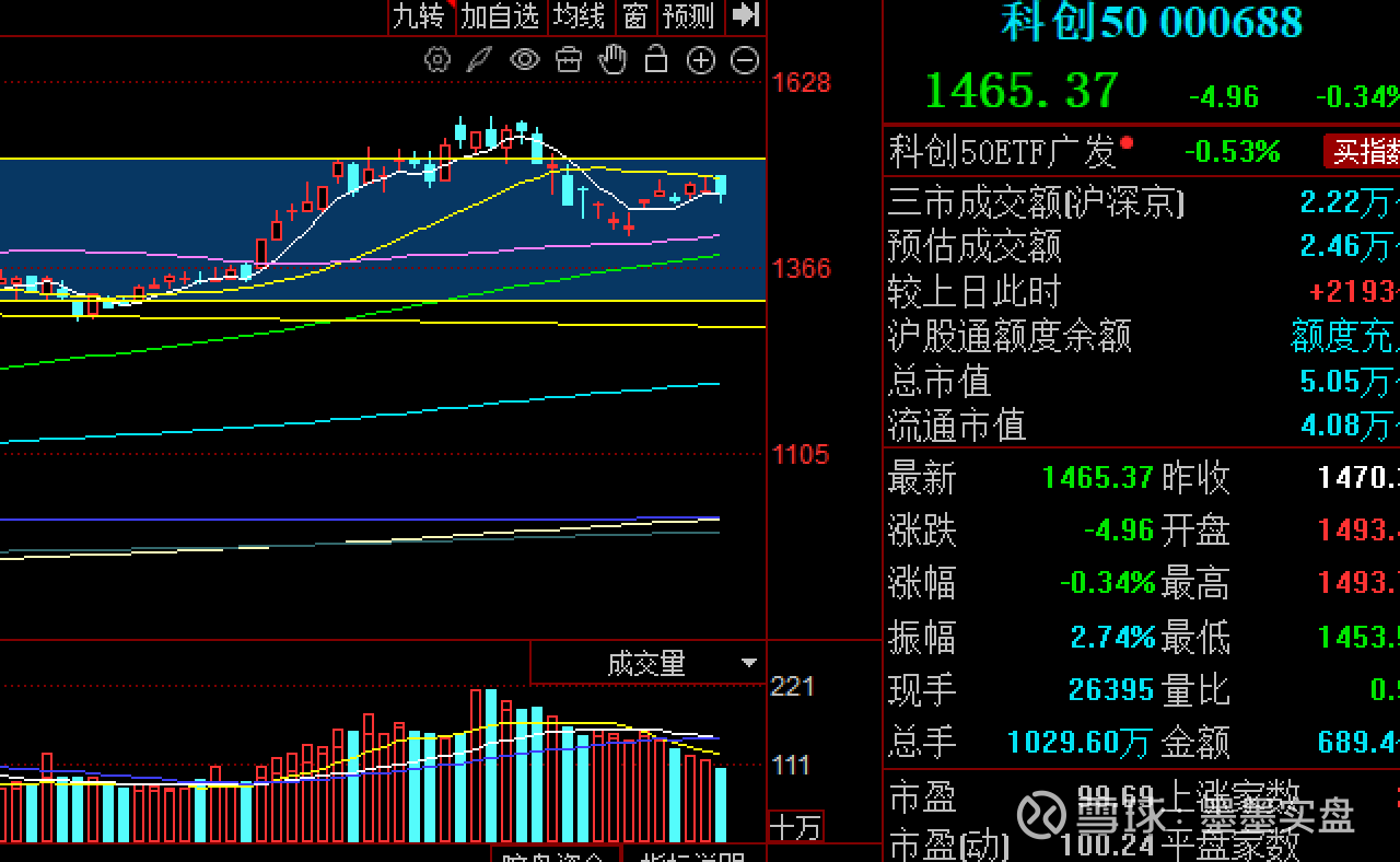 科创50之前说了会调整,今天量能不足的问题很明显,买盘完全不够。20日线马上就会下穿5日线走60日线了,正常是绿线支撑。
