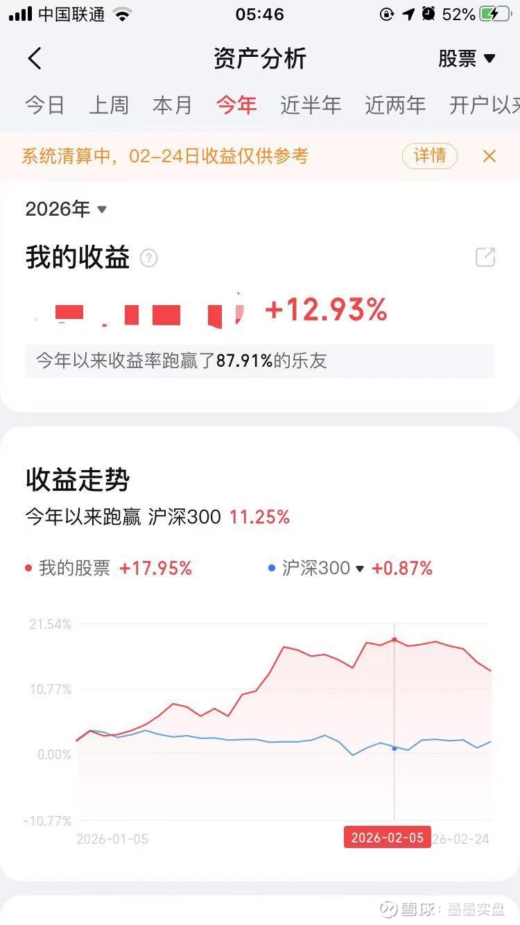 节前最后一天把2月份盈利全部亏完,刚好是0收益,跑赢了60%账户。