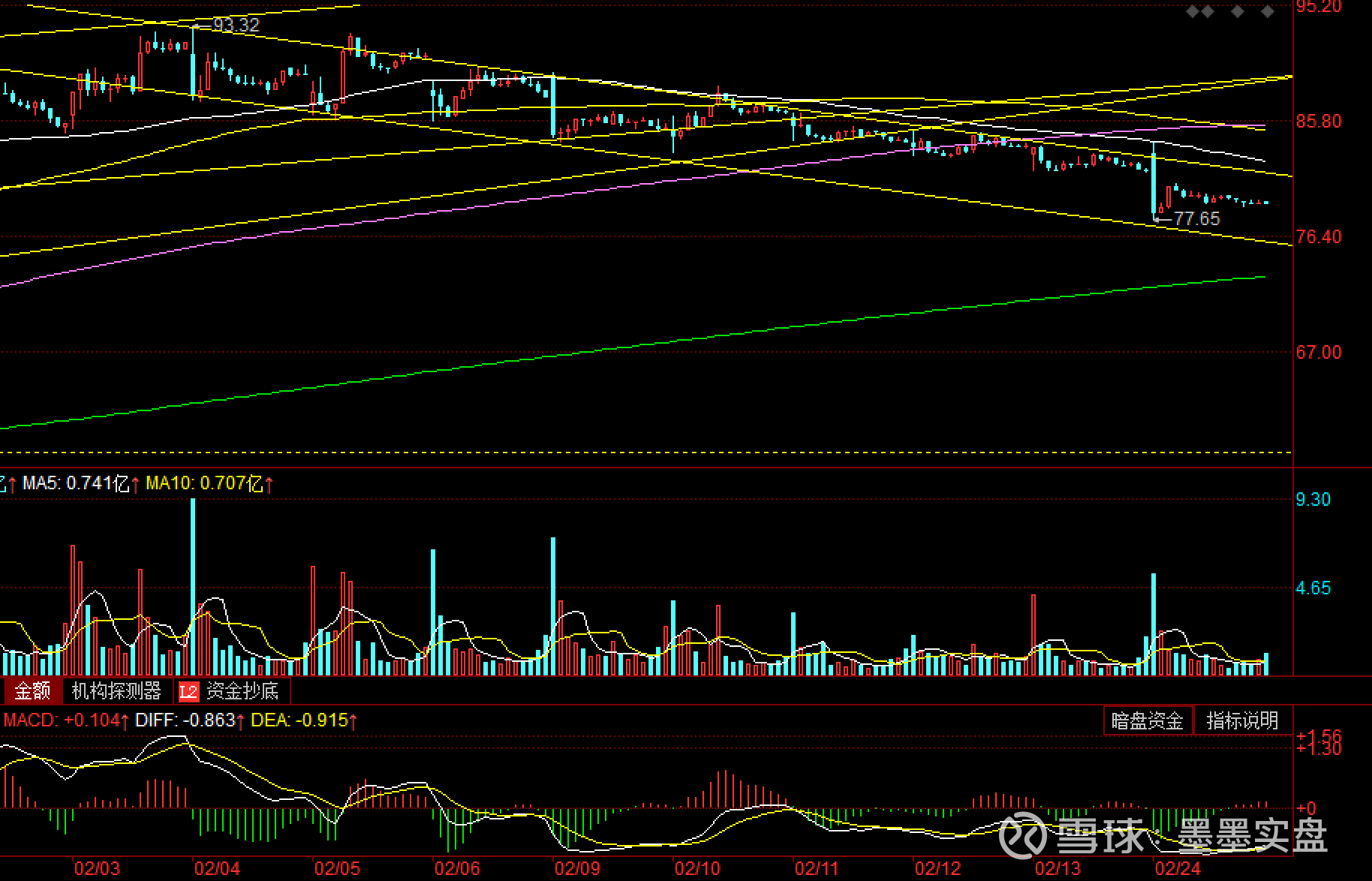 15分钟日K,走的下降通道,2月24日放了根巨量,这里要警惕。