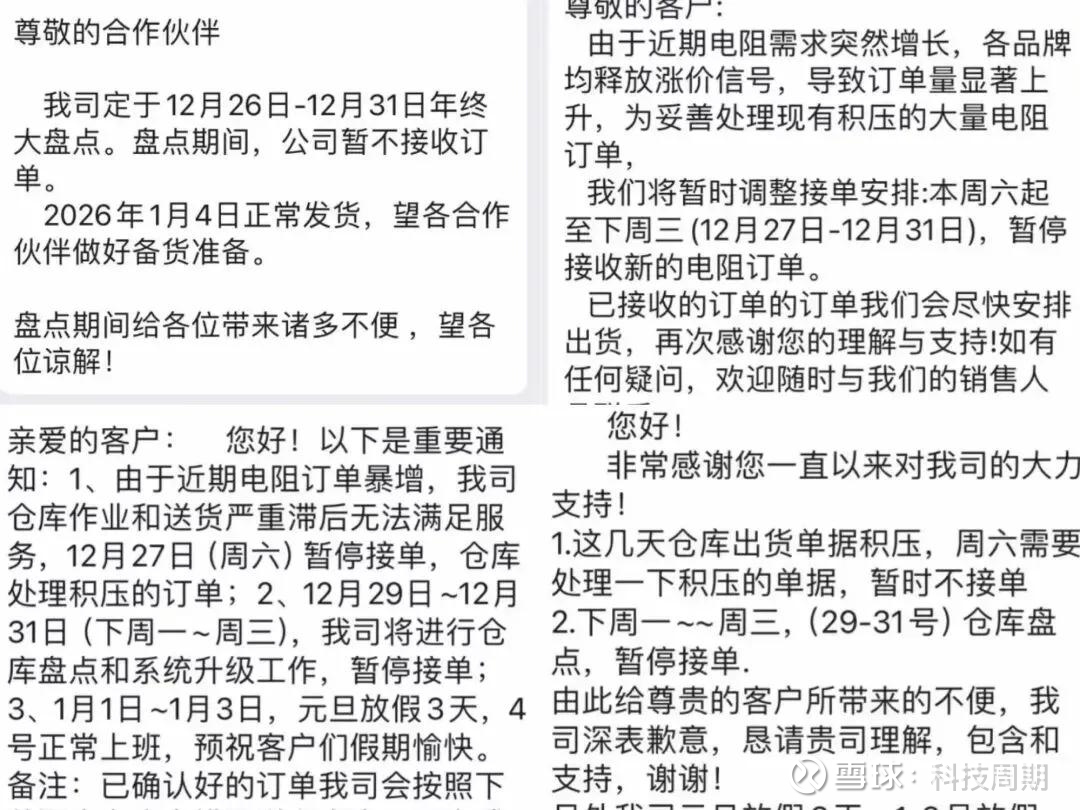 除了明确的涨价行动以外,被动元件在元旦前还存在暂停接单报价的情况。