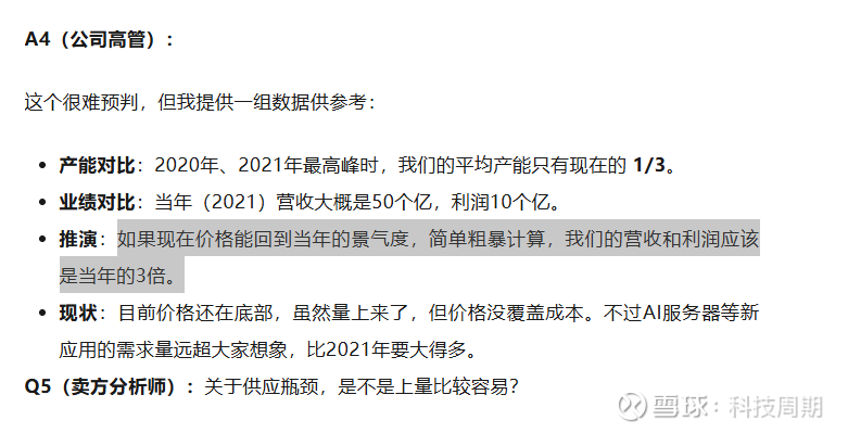 推演:如果现在价格能回到当年的景气度,简单粗暴计算,我们的营收和利润应该是当年的3倍。