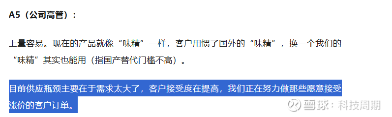 目前供应瓶颈主要在于需求太大了,客户接受度在提高,我们正在努力做那些愿意接受涨价的客户订单。