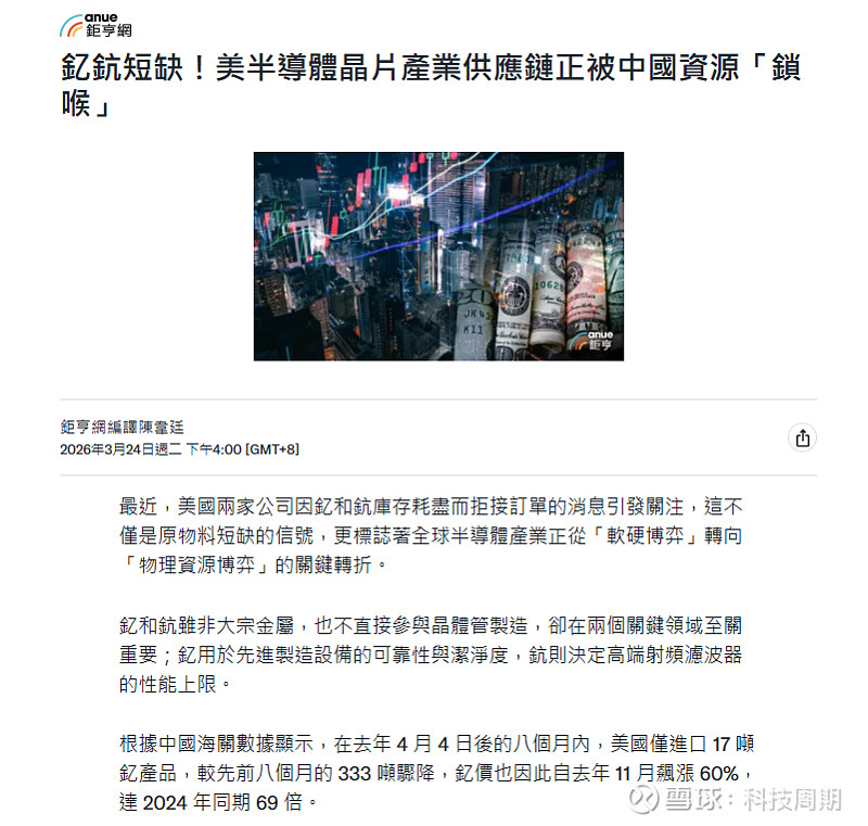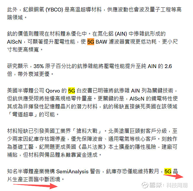 釔鈧短缺!美半導體晶片產業供應鏈正被「XX」,知名半導體產業機構 SemiAnalysis 警告,鈧庫存恐僅能維持數月,5G 晶片生產正面臨中斷困境。