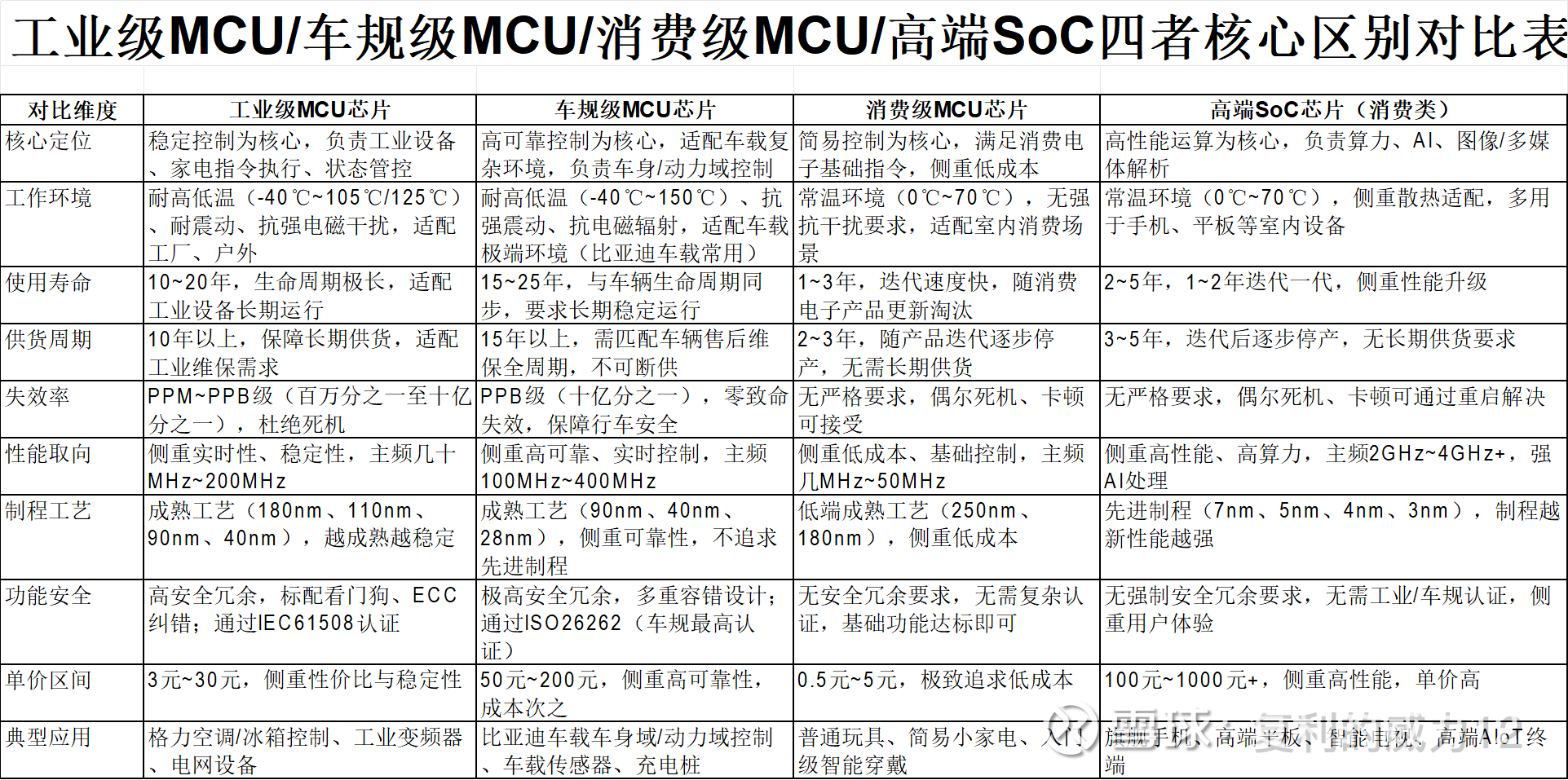 MCU:汽车的小脑,负责控制执行,分车身(简单)和动力底盘(极难)。