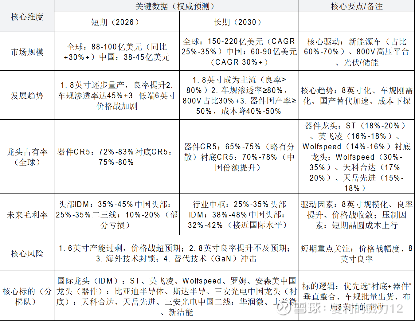 1.2026-2030年,碳化硅SIC市场快速增长期,预计全球市场规模从700亿增长到1300亿左右。