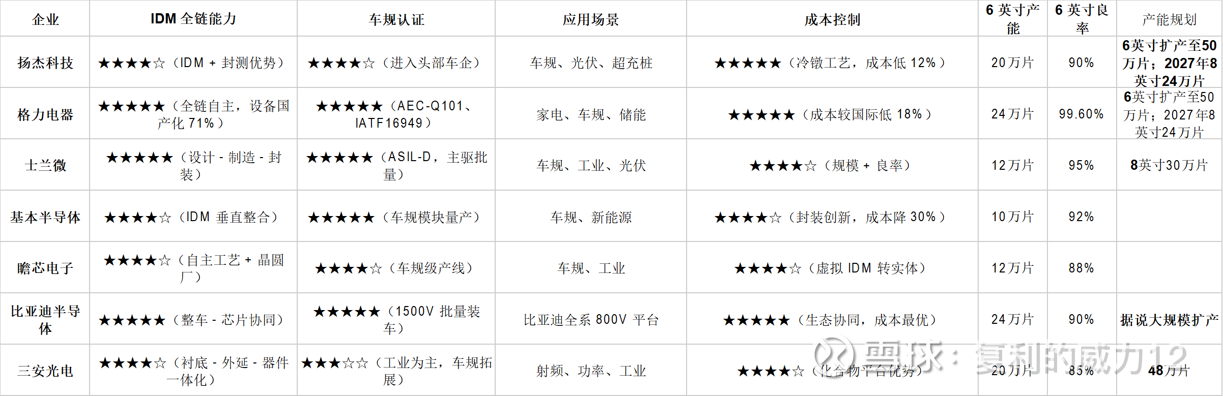 2.目前各企业竞争的核心是8英寸SIC的规模化提升能力,良率的提升,谁能最先实现降本,谁就是下一阶段的核心领导者。