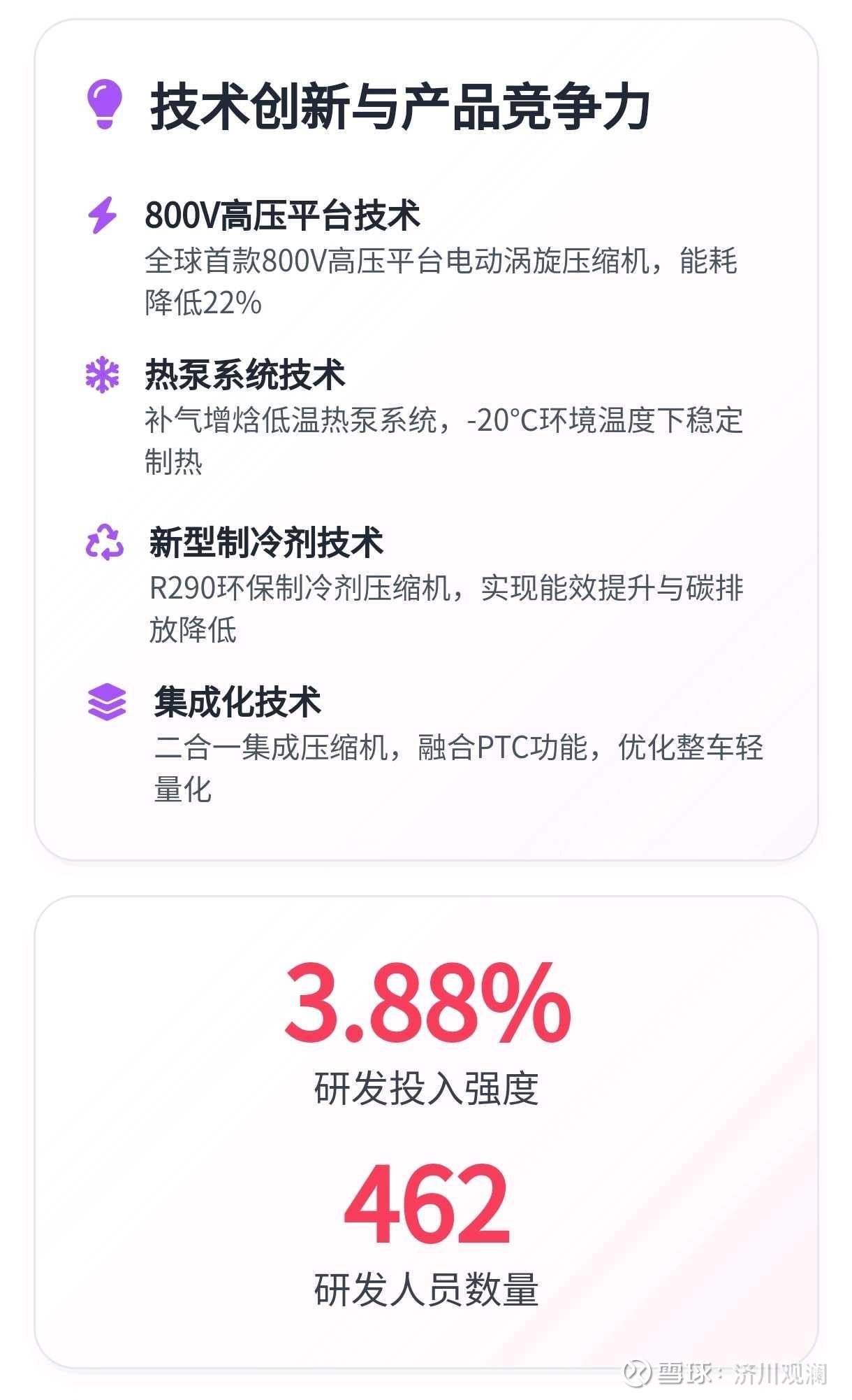 其二,技术壁垒坚实。2024年研发费用达3亿元,拥有4252项专利,高压电动压缩机、热泵热管理系统等适配800V高压平台,子公司的储能液冷技术还切入宁德时代供应链。