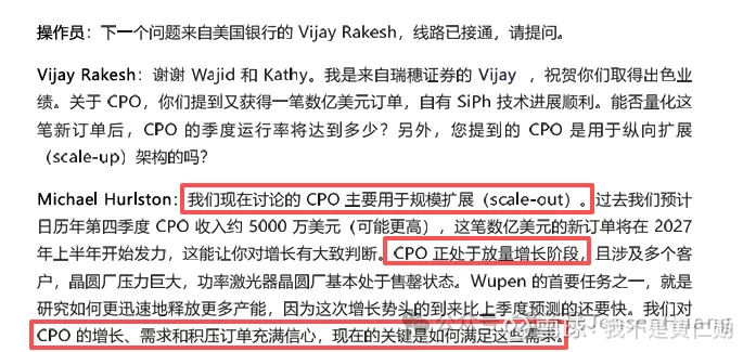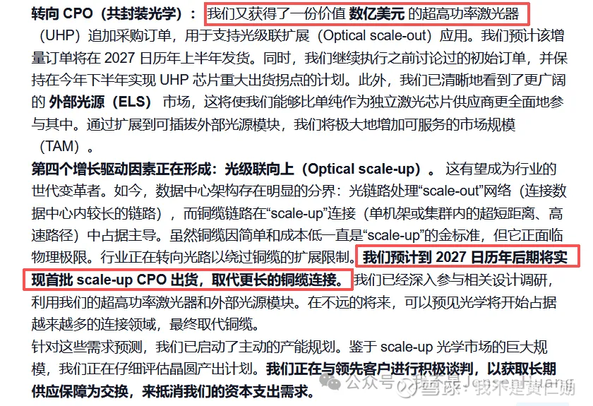 之前Lumentum公告过一个1+亿美元的CPO光源订单 这次电话会又说到又接了一个新的
