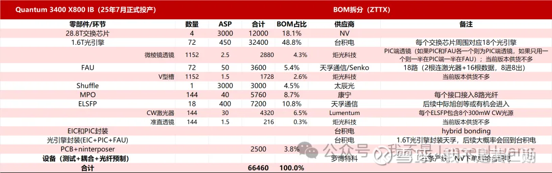 光源占BOM的6.5% 所以总的CPO交换机成本是 2亿/6.5%=大约30亿美金