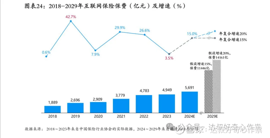 公司所涉及的保险业态及细分品种(如宠物保险、退货险、新能源车险)有很大的增长潜力,且是通过互联网渠道去做营销,尽管前期费用率偏高,但能有效驱动营收以及自营业务增长。根据元保集团与清华大学五道口金融学院调研的《2024年中国互联网保险消费者洞察报告》预计未来5年,互联网保险年均增速将稳定保持在15%-20%,总保费有望突破万亿元。