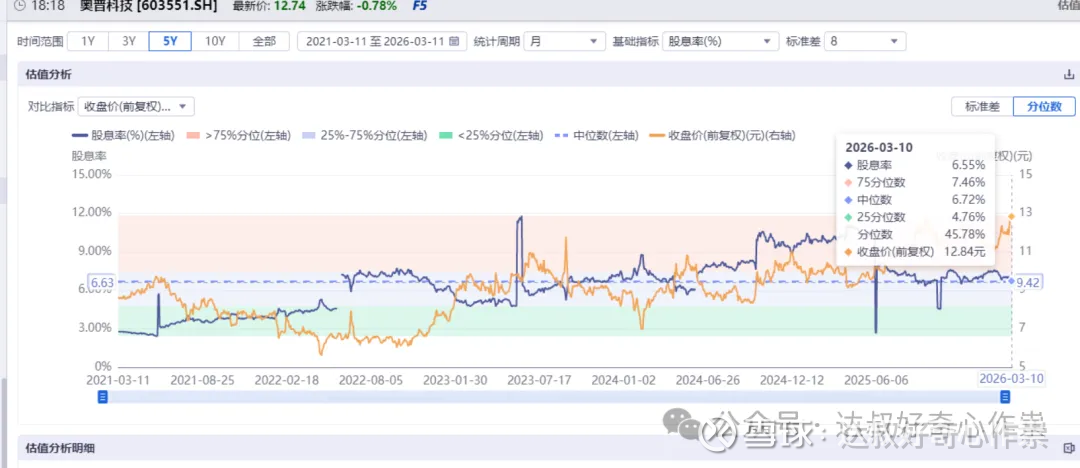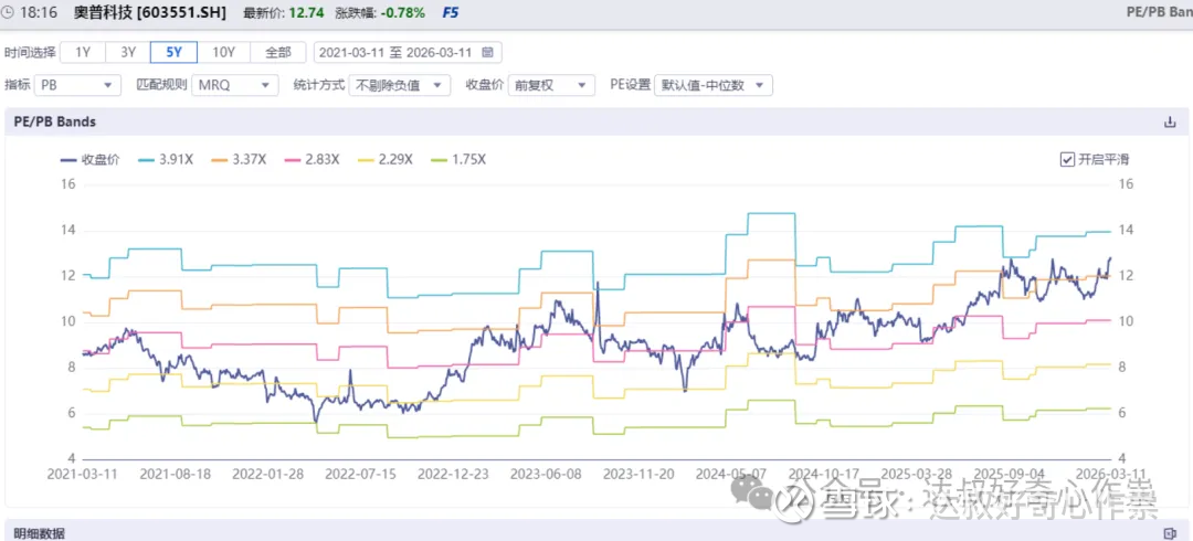 本周研究的是奥普科技(股票代码:603551),为国内浴霸行业的开创者,深耕家居电器与家装结合领域近30年,主营浴霸、集成吊顶等产品,经营稳健、财务健康,妥妥的红利板块优质标的。奥普科技股价近5年持续上涨,其中2026年年内涨幅超12%,3月涨幅更是接近9%,逆势跑赢同期上证指数(3月-0.81%,年+4.04%)、沪深300指数(3月-0.49%,年+1.24%)。