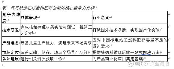 在技术认证方面,日月股份已完成产品本体各种材质实验和测试,目前正积极推进相关资质获取工作。这表明公司的产品已从研发阶段进入工程化验证阶段,一旦通过监管机构审批,将具备批量生产能力。值得注意的是,核废料贮存设备属于高准入领域,产品需经过严格的安全评审和性能测试,日月股份在此领域的进展体现了其技术实力。