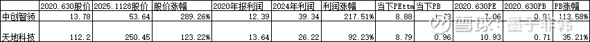 1. 相比2020年6月30日股价低点,中创智领股价涨幅289%,利润涨幅217%;天地科技股价涨幅123%,利润涨幅92%;中创智领PB涨幅113%,天地科技PB涨幅35%。天地科技的业绩增速确实不如中创智领,但是估值提升幅度也远低于中创智领。