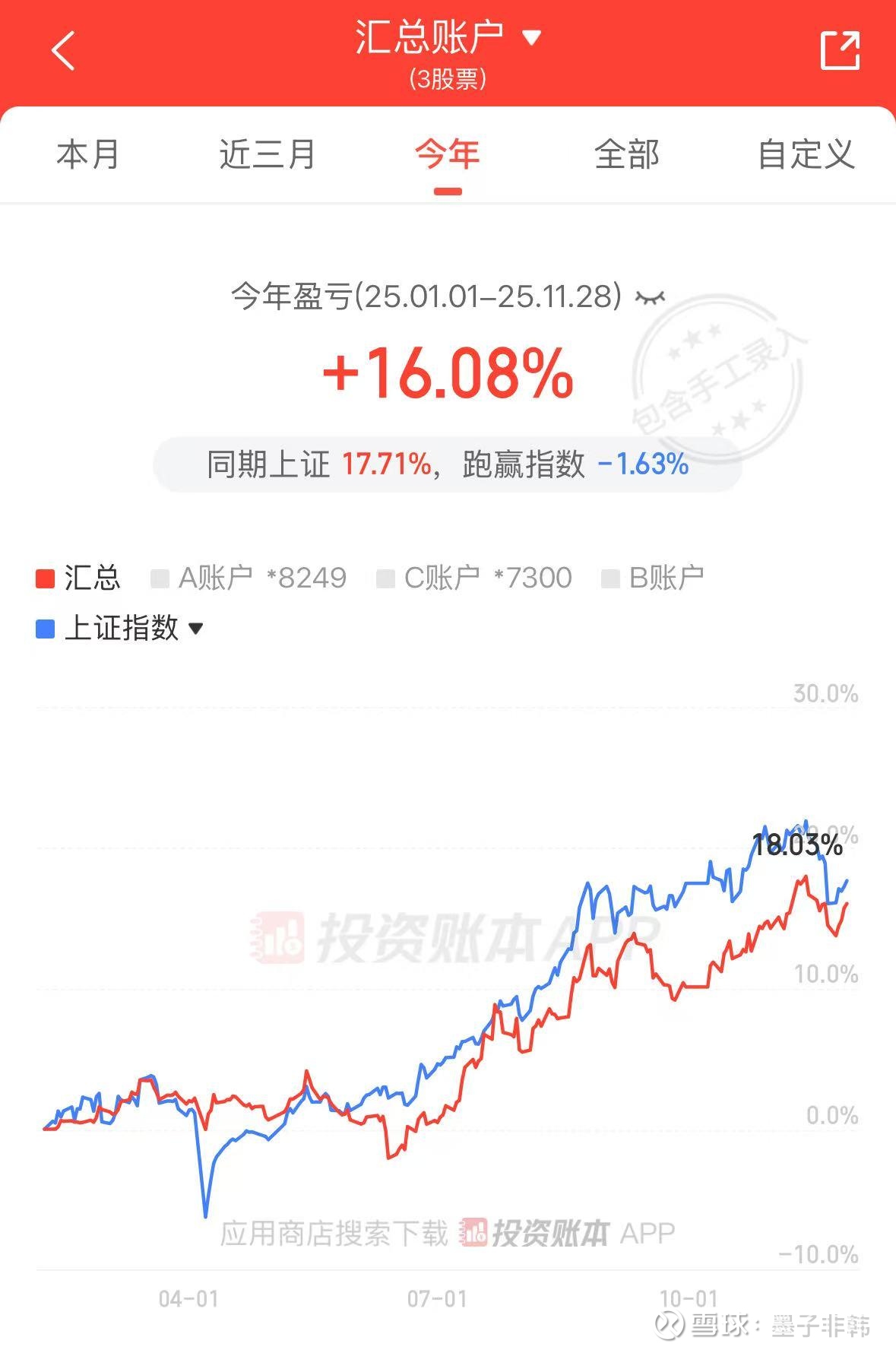 本月1.54%,跑赢上证3个点,本年16.08%,跑输上证1.6%。