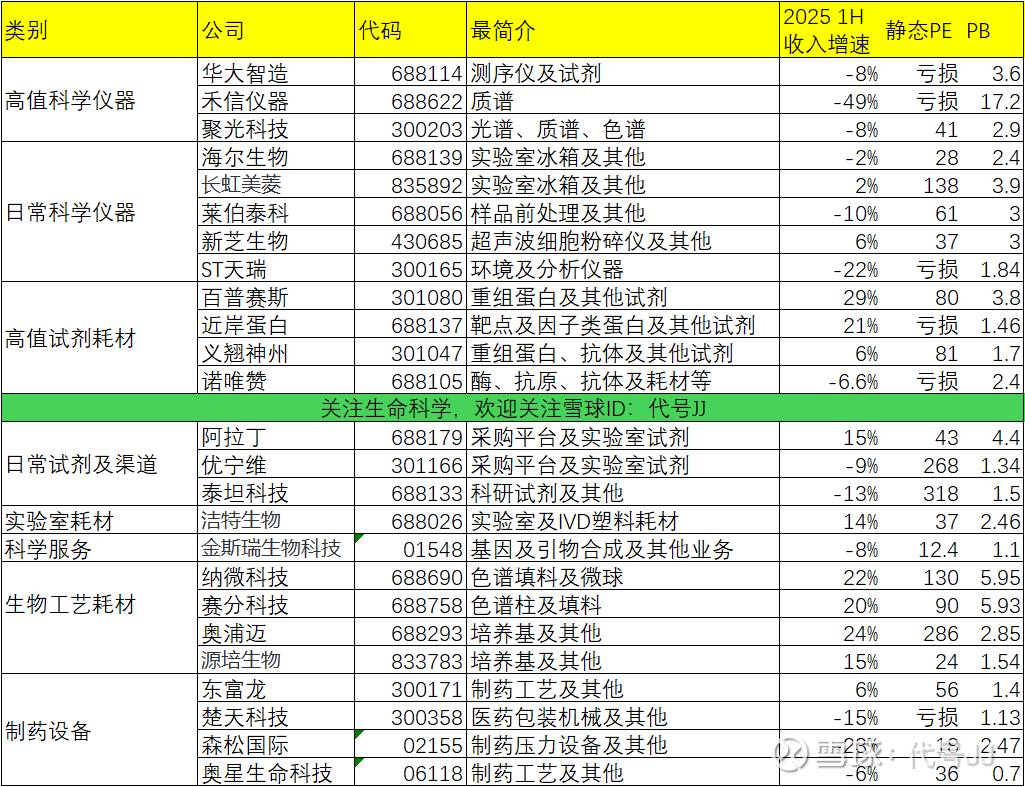生命科学领域细分市场小又多,国内企业鱼龙混杂。里面有几家公司我也是到访和交流过,当然如果投一级市场,未上市的公司还有不少。
